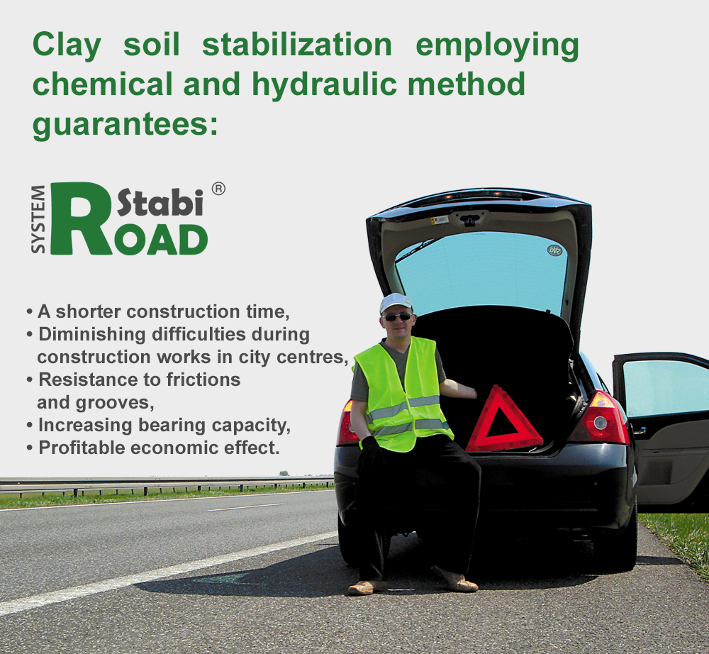 Trwała stabilizacja gruntów gliniastych i wątpliwych metodą chemiczno-hydrauliczną w technologii STABI Road System. Utwardzanie gruntów i recykling zniszczonych zawierzchni bitumicznych.