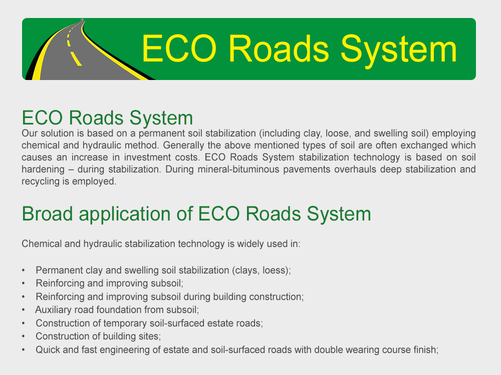 - Transfer technologii stabilizacji gruntów STABI Road.