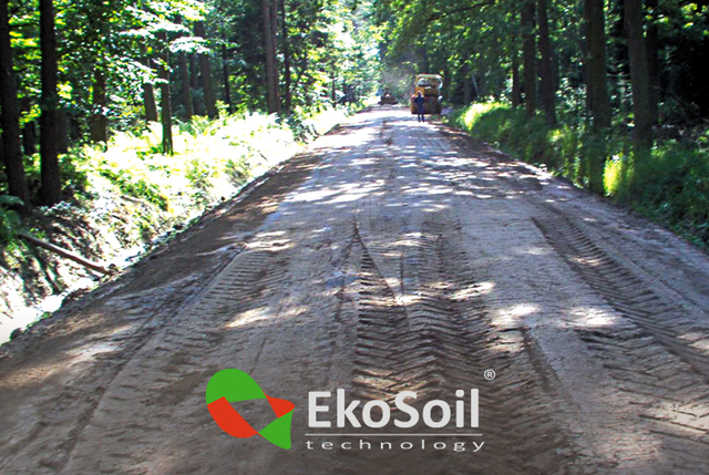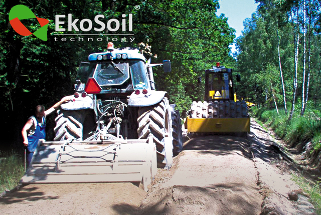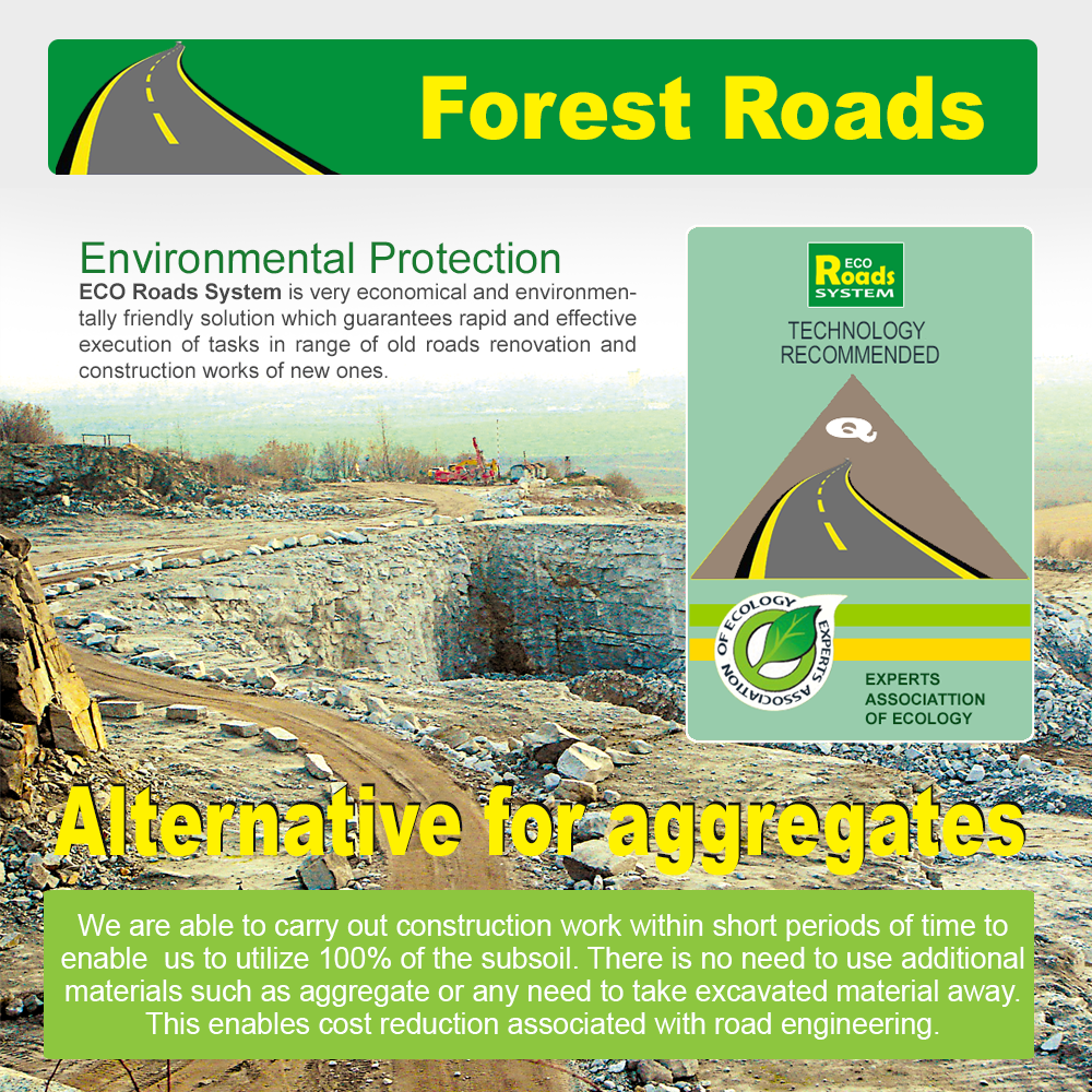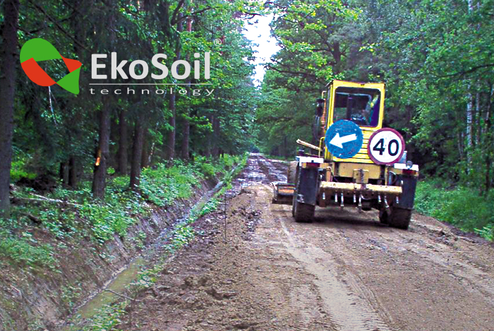 ECO Roads System, in a short period of construction works, enables utilizing 100% of the subsoil, there is no need to use such additional materials as aggregate or to take away excavating material. It enables reducing the costs connected with road engineering.