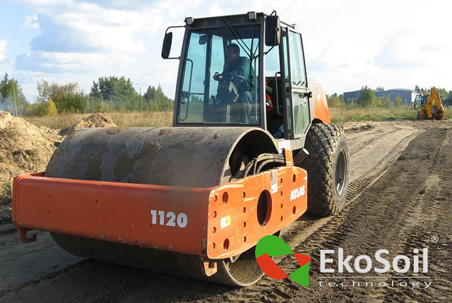 ECO Roads System, in a short period of construction works, enables utilizing 100% of the subsoil, there is no need to use such additional materials as aggregate or to take away excavating material. It enables reducing the costs connected with road engineering.