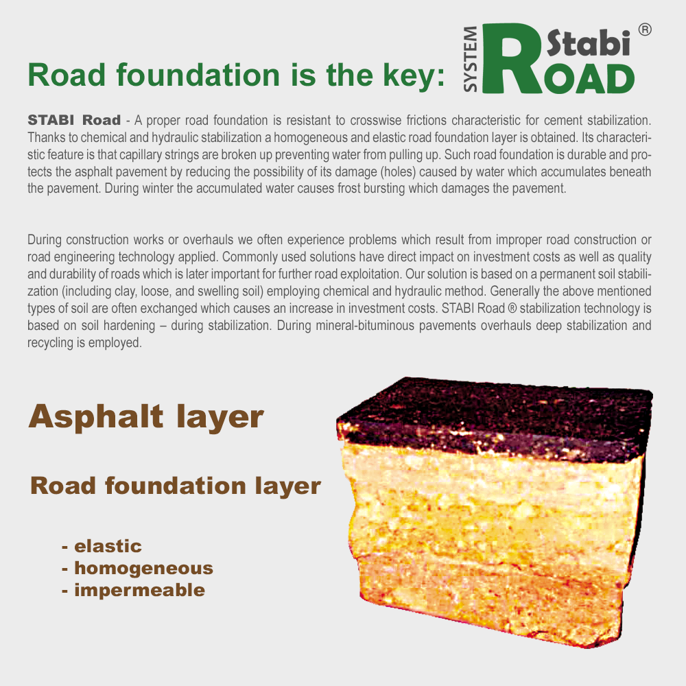 - Transfer technologii stabilizacji gruntów STABI Road.