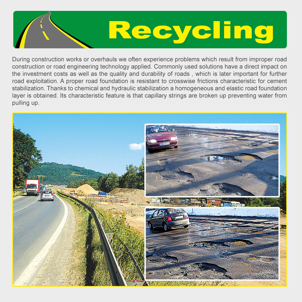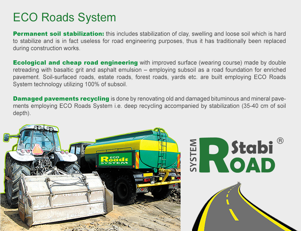 Trwała stabilizacja gruntów gliniastych i wątpliwych metodą chemiczno-hydrauliczną w technologii STABI Road System. Utwardzanie gruntów i recykling zniszczonych zawierzchni bitumicznych.